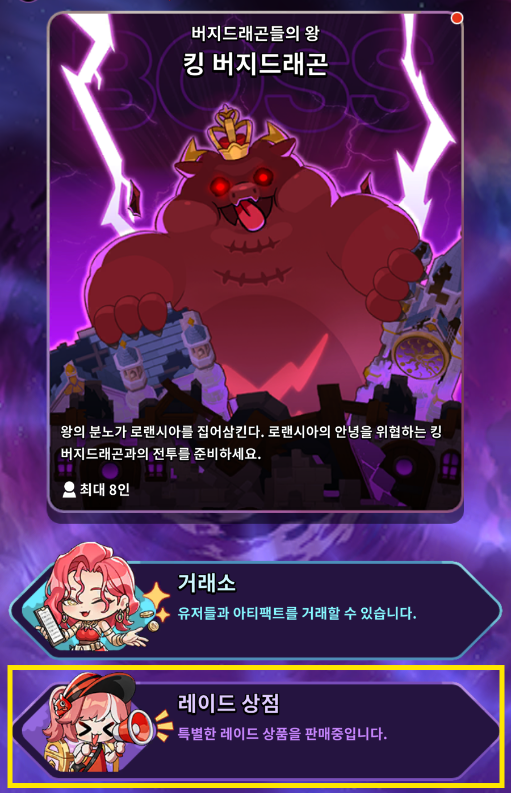 - 레이드 관련 상품은 마을에 위치해 있는 [레이드 게이트]를 통해 구매하실 수 있습니다.