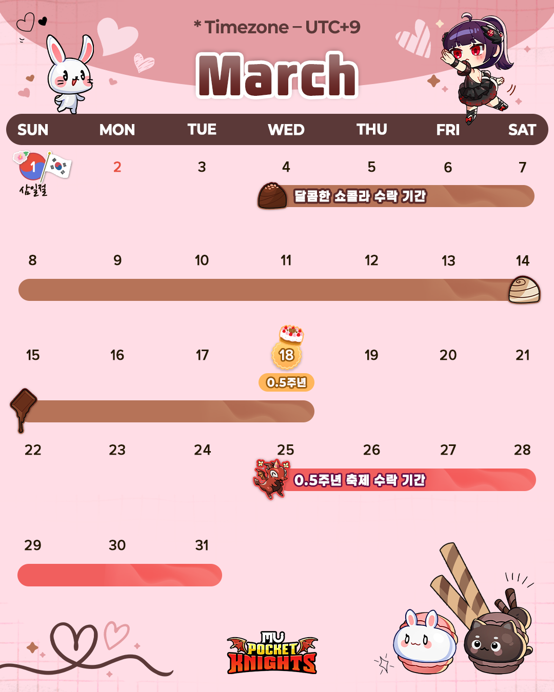 🍀뮤: 포켓 나이츠 3월 이벤트 캘린더