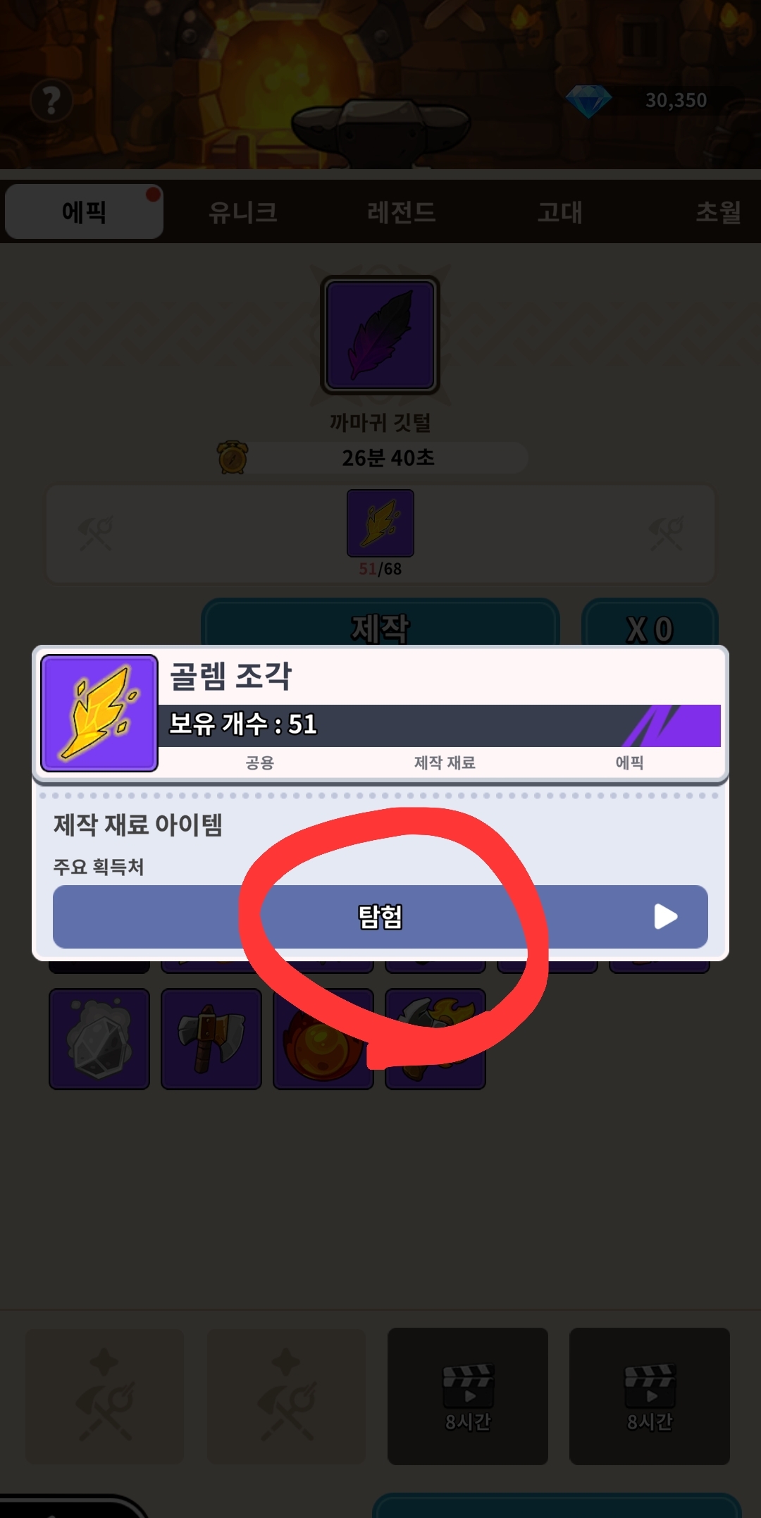 이렇게 탐험을 자신이 보완 하고 싶은 능력치를 정한 후에 그에 대한 재료를 위주로 먼저 탐험을 수행하여