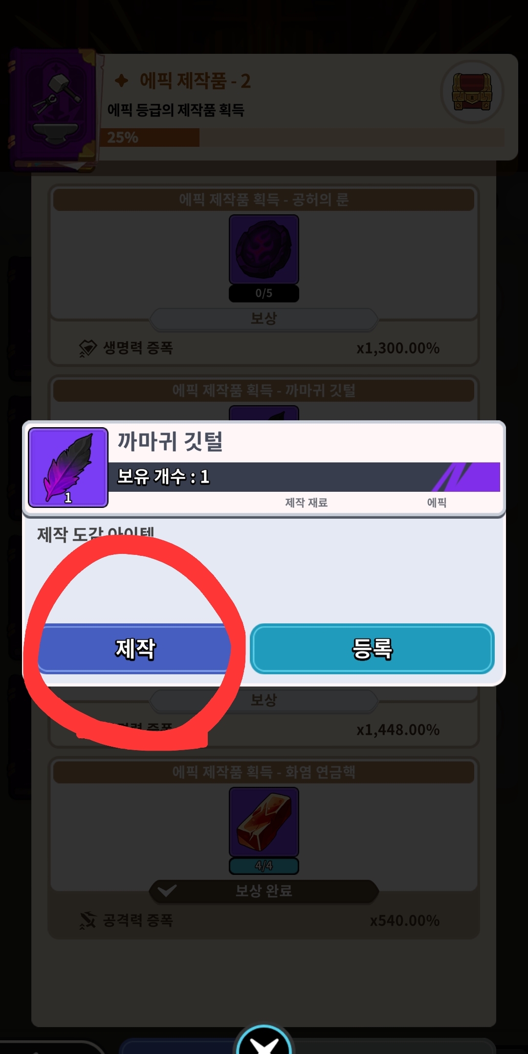 제작이라는 것에 빨간 점이 찍혀 무심코 제작을 누르고 그랬었는데.. 나중에 알고 보니. 이미 보상 완료가 되어 있는