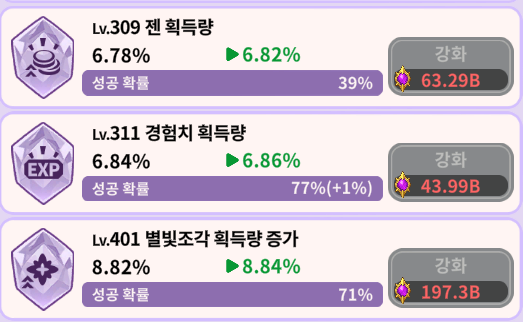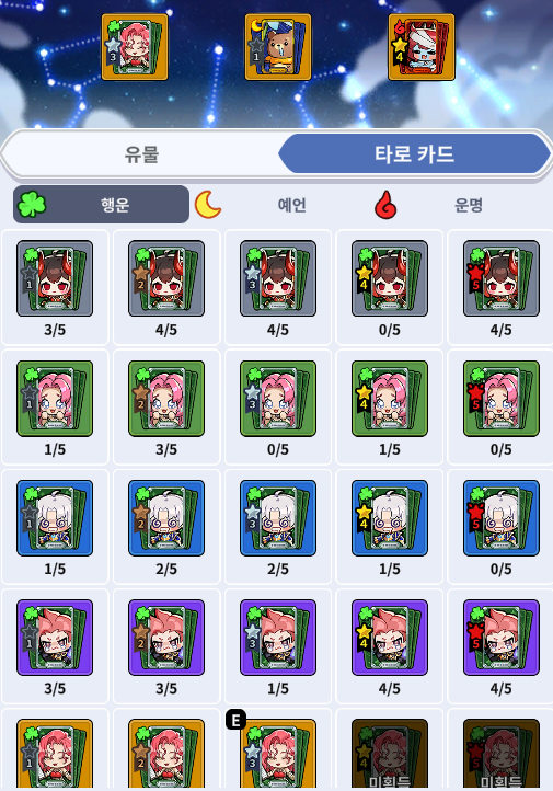 별빛조각 획득(타로 카드 소환 조각)을 더 얻게끔 할 수 있어서, 좋습니다.