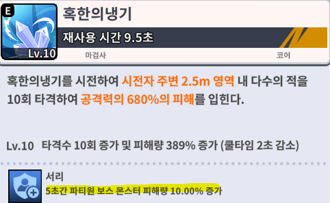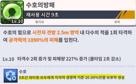 전에 자신 1명을 위한 스킬이였으나, 이제는 4인 파티 구성원을 위한 파티 효과로 바뀌었어요.