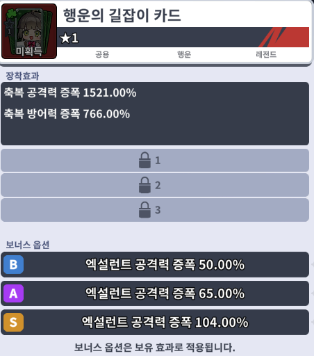 유니크 이후 레전드 카드부터 보너스 옵션이 생기며, 보유 효과 적용으로 능력치가 상승됩니다.