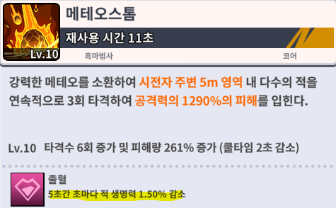 흑마법사의 이전 핵심 스킬 중 하나였던, 메테오 스톰이 3%감소 효과에서 1.5%로 변경되어서