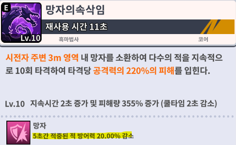 망자의 속삭임을 통한 방어력을 깎으면서, 딜을 넣을때도 있고