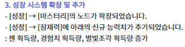 추가 잠재력도 생겨서 젠 획득(능력치 올리기), 경험치 획득(캐릭터 경험치)