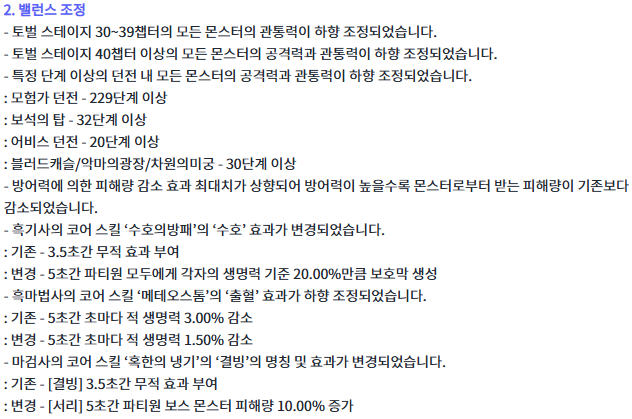 파티원 보스 몬스터 피해량이 10%로 증가하여서, 무적이 사라진 것은 아쉽지만