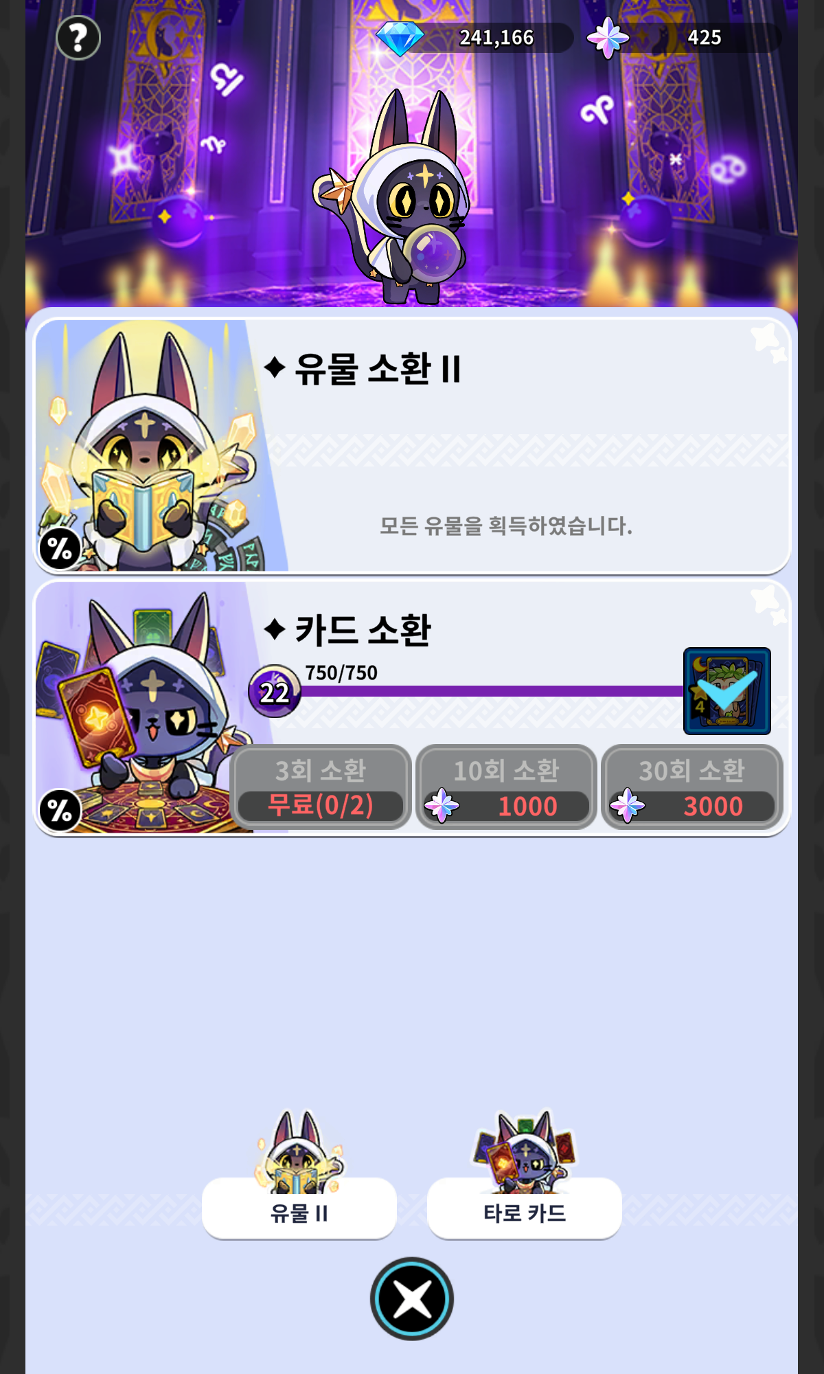 1.뮨 구매 2.코스튬 구매 3.룬상자 구매 4.유물소환 ..5.타로카드 소환