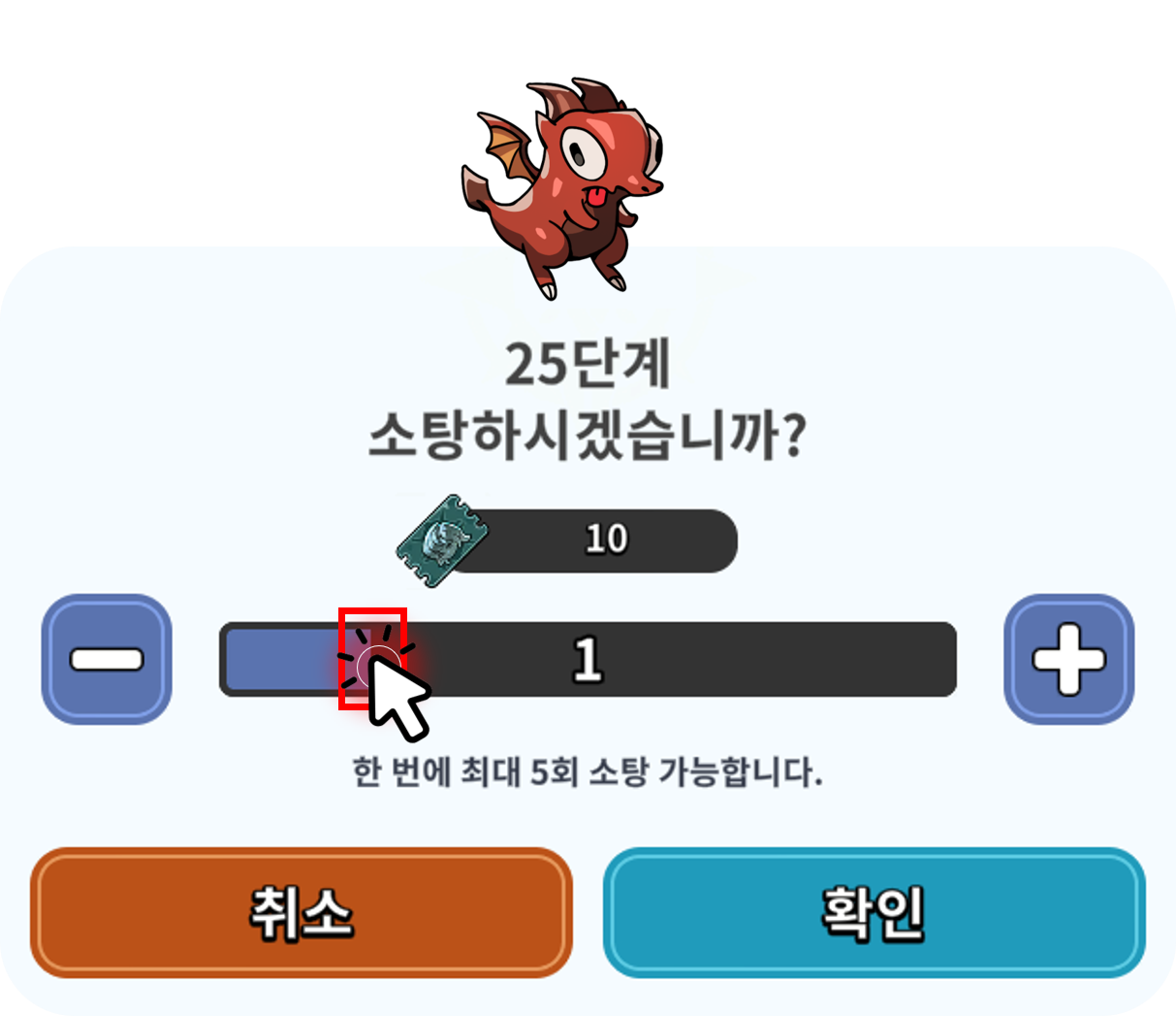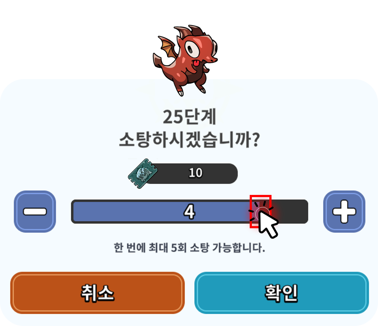 - - 한 번에 사용하고 싶은 수량이 될 때까지 오른쪽으로 쭈욱 드래그해주세요.