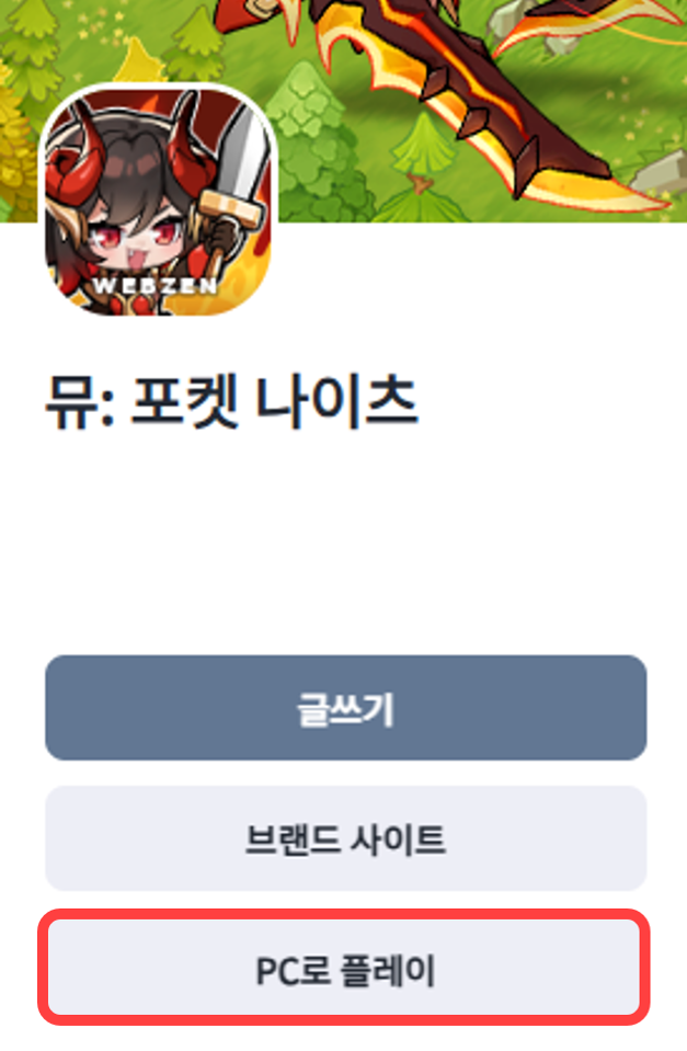 - 3. [게임 시작] 버튼을 눌러 뮤: 포켓 나이츠를 실행합니다.