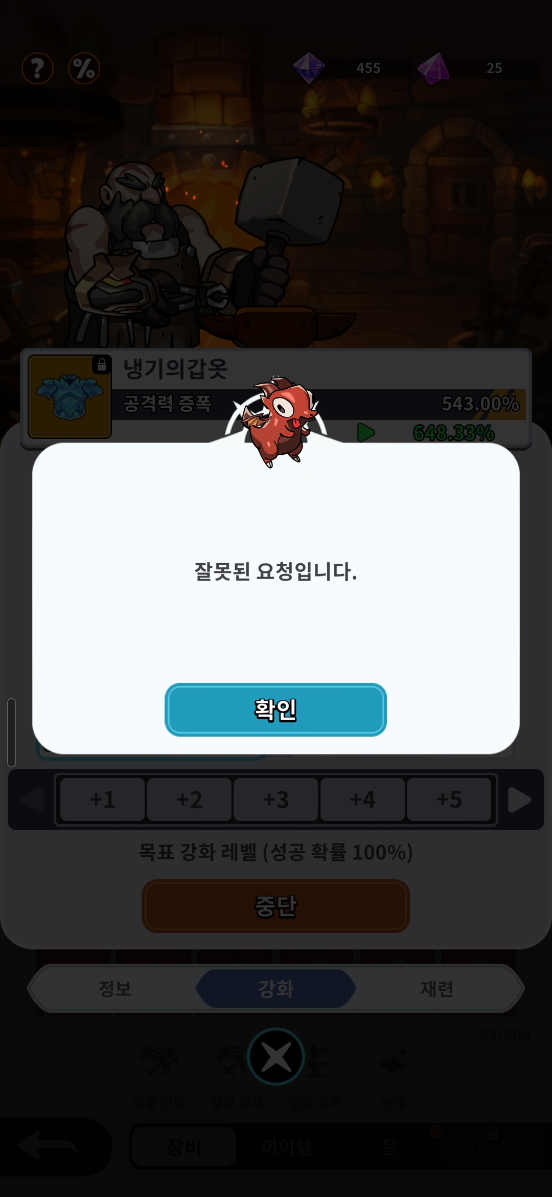장비강화시 잘못된요청이라고 나오네요