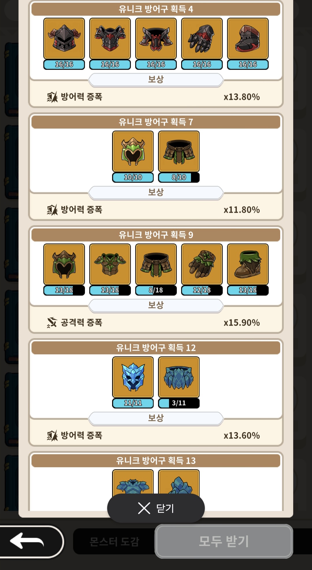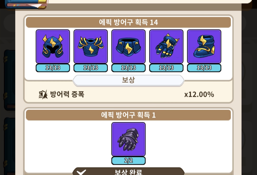 에픽방어구14랑 유니크방어구4 보상 획득이 안됩니다