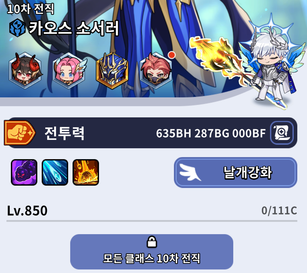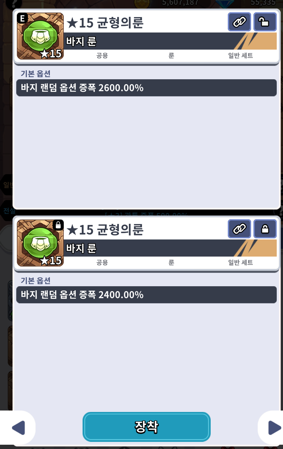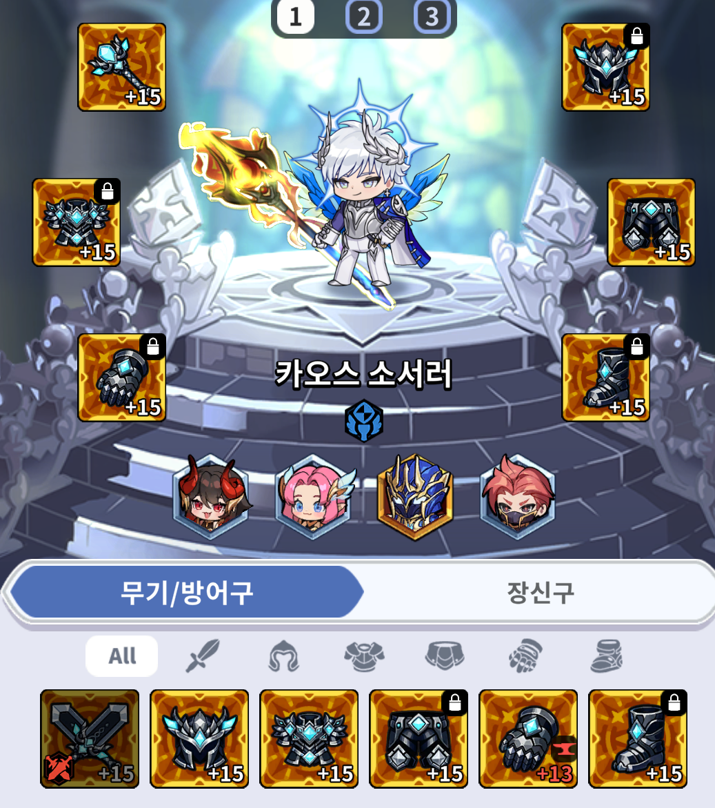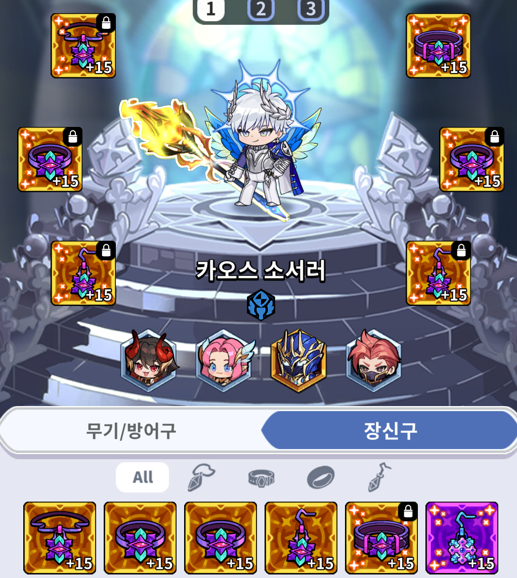 3.메인캐릭터의 장비,악세도 잠가두자.