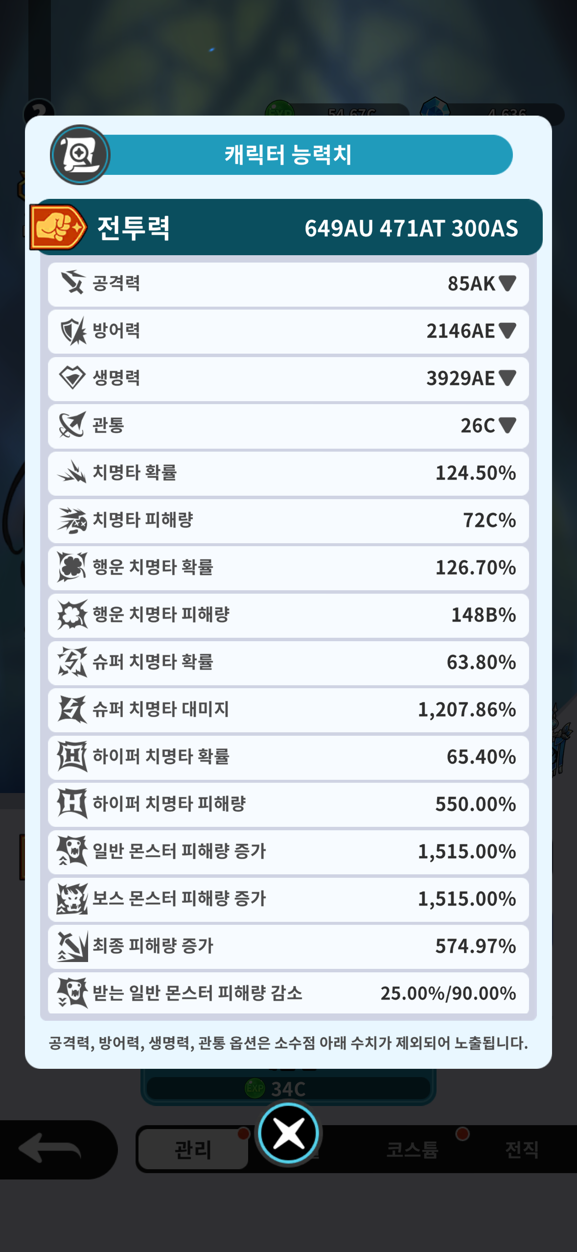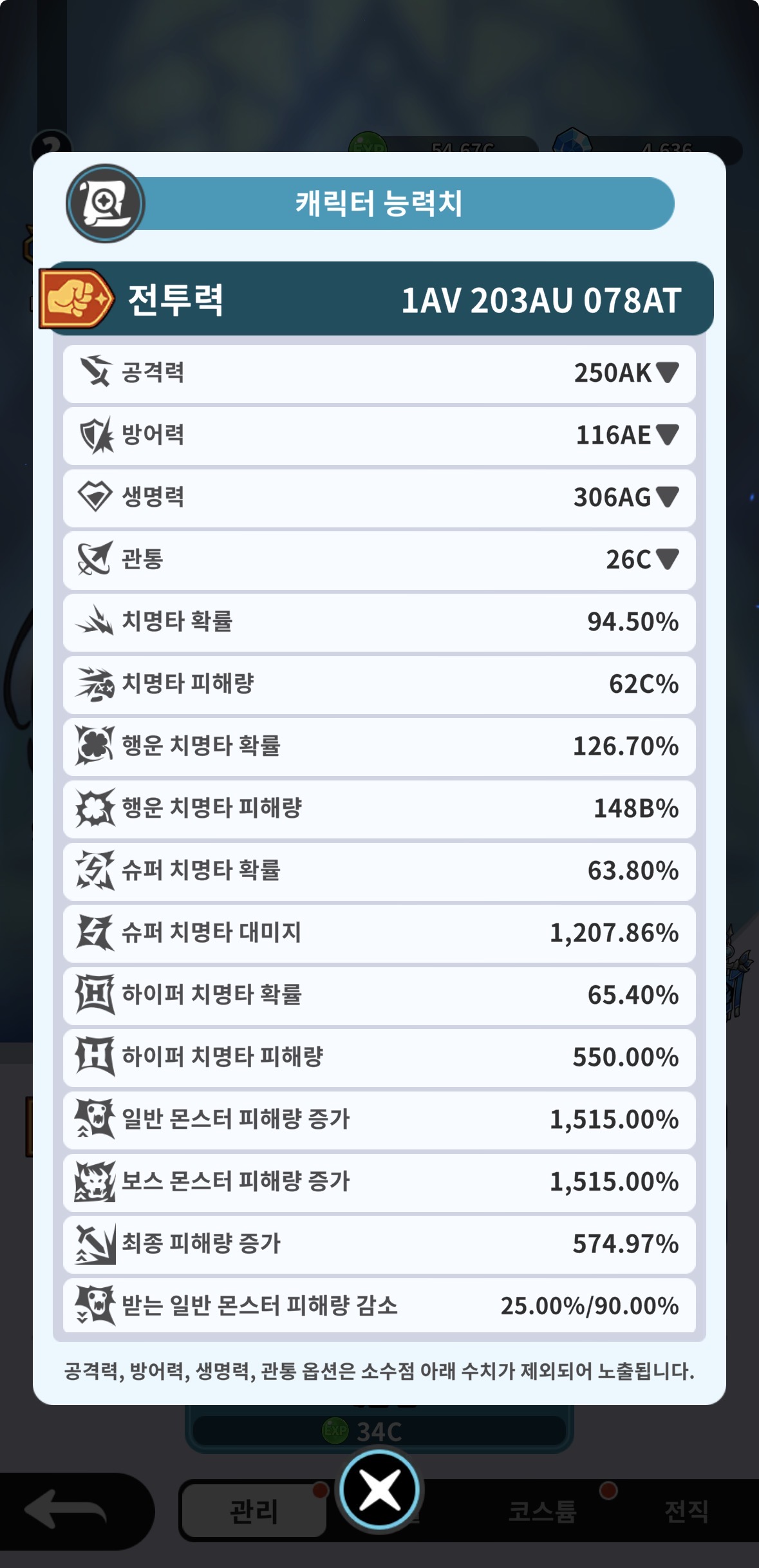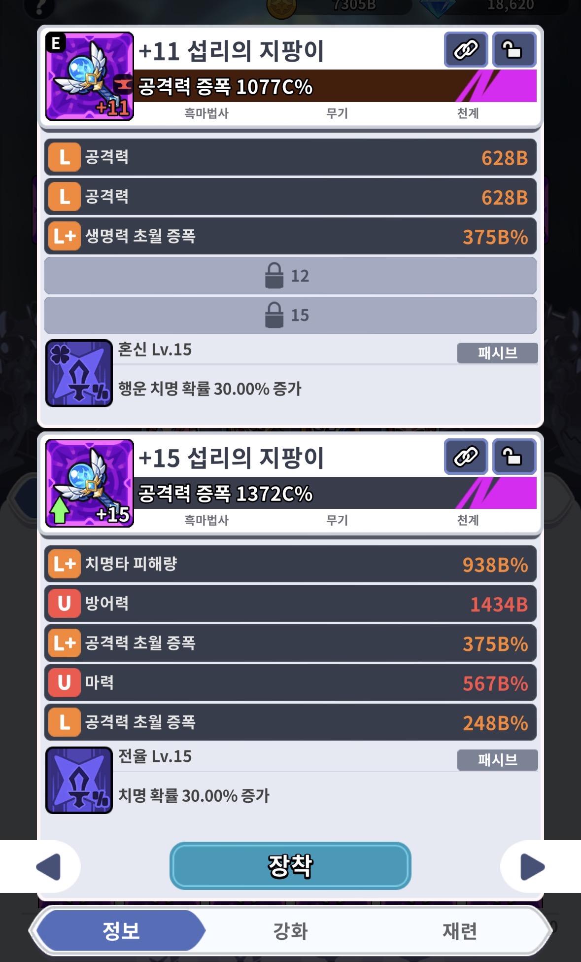 강화도 더 붙었고, 아래장비에 치명, 공증, 마력이 있는데도 하락 되는게 잘 이해가 되지 않습니다.